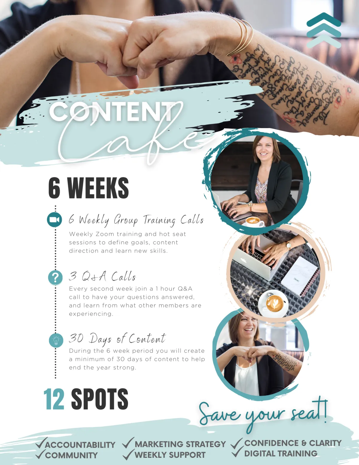 If you're ready to grow your business online with confidence and clarity, join the next Content Café!